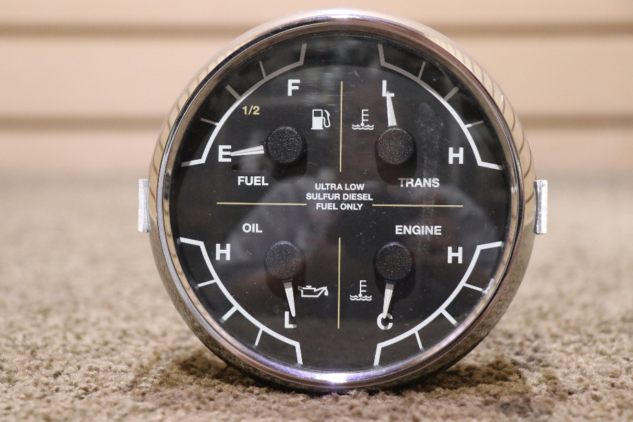 USED RV 18653-50005-19 MEDALLION 4 IN 1 FUEL / TRANS / OIL / ENGINE DASH GAUGE FOR SALE PRICE $500.00 + $18.99 SHIPPING. CONDITION - USED. READY TO SHIP. RV/MOTORHOME USED MEDALLION 4 IN 1 GAUGES. CALL VISONE RV (606) 843-9889 TO ORDER OR JUST ADD TO SHOPPING CART FOR EASY CHECKOUT. MEDALLION CONTROL NO. 37206B2C02-23 NOTE: ALL USED ITEMS AND PARTS ARE ALWAYS SOLD AS-IS WITH NO RETURNS. HOWEVER, AT VISONE RV, WE DO TEST ALL ELECTRICAL COMPONENTS - PRODUCTS. THEY ARE IN WORKING ORDER BEFORE SHIPPING OR PICK-UP SO THAT OUR CUSTOMERS CAN BUY WITH CONFIDENCE! ITEM AVAILABLE FOR SHIPPING. TO ORDER PLEASE CALL VISONE RV (606) 843-9889 OR ADD TO SHOPPING CART FOR EASY CHECKOUT.