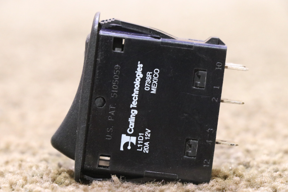 USED L11D1 LIGHTED BLACK ROCKER SWITCH CONDITION - USED. PRICE $35.00 + $6.99 SHIPPING. RV/MOTORHOME USED LIGHTED SWITCHES. READY TO SHIP. CALL VISONE RV (606) 843-9889 TO ORDER OR JUST ADD TO SHOPPING CART FOR EASY CHECKOUT. LIGHTED CONTROL NO. 37210B2C00-98 NOTE: ALL USED ITEMS AND PARTS ARE ALWAYS SOLD AS-IS WITH NO RETURNS. HOWEVER, AT VISONE RV, WE DO TEST ALL ELECTRICAL COMPONENTS - PRODUCTS. THEY ARE IN WORKING ORDER BEFORE SHIPPING OR PICK-UP SO THAT OUR CUSTOMERS CAN BUY WITH CONFIDENCE! ITEM AVAILABLE FOR SHIPPING. TO ORDER PLEASE CALL VISONE RV (606) 843-9889 OR ADD TO SHOPPING CART FOR EASY CHECKOUT.