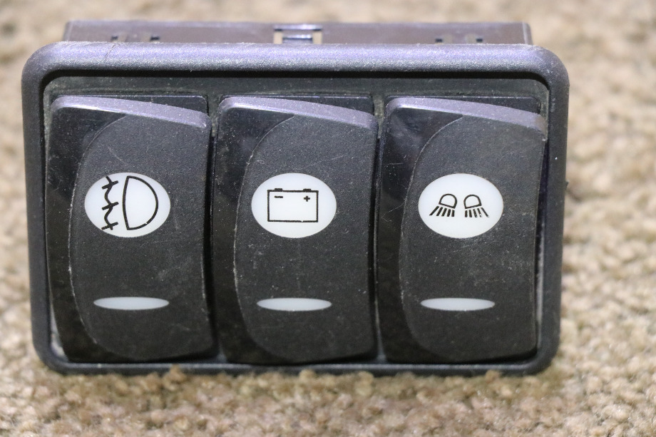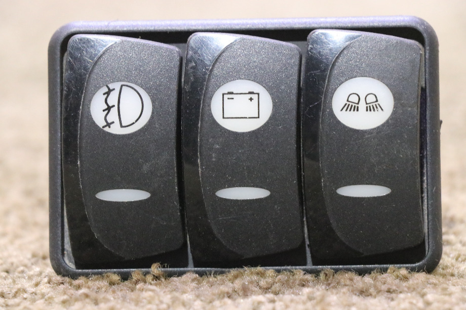 USED FOG / BATT / DRIVING LIGHTS TRIPLE SWITCH DASH PANEL RV/MOTORHOME PARTS FOR SALE