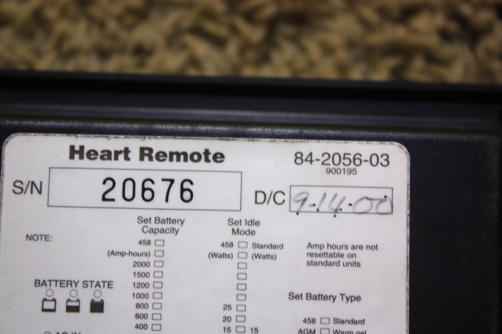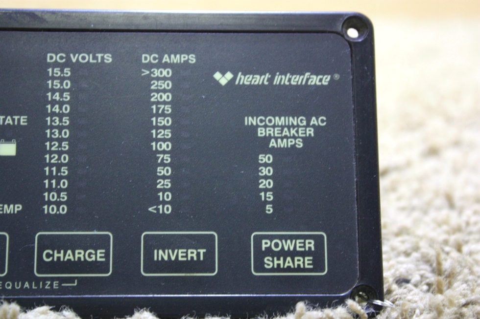 READY TO SHIP. PRICE $150.00 + $12.99 SHIPPING. USED RV/MOTORHOME HEART INTERFACE INVERTER CHARGER REMOTES. CALL VISONE RV (606) 843-9889. (CLICK FOR MORE INFORMATION)