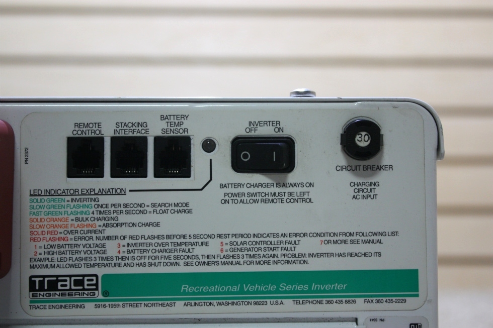 PRICE $1,250.00 + SHIPPING. USED RV/MOTORHOME TRACE ENGINEERING INVERTER CHARGERS. CALL VISONE RV (606) 843-9889 TO ORDER.