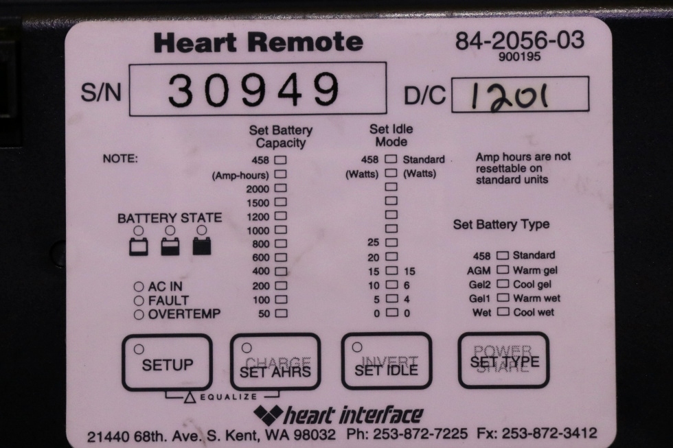 USED MOTORHOME HEART INTERFACE 84-2056-03 HEART REMOTE FOR SALE