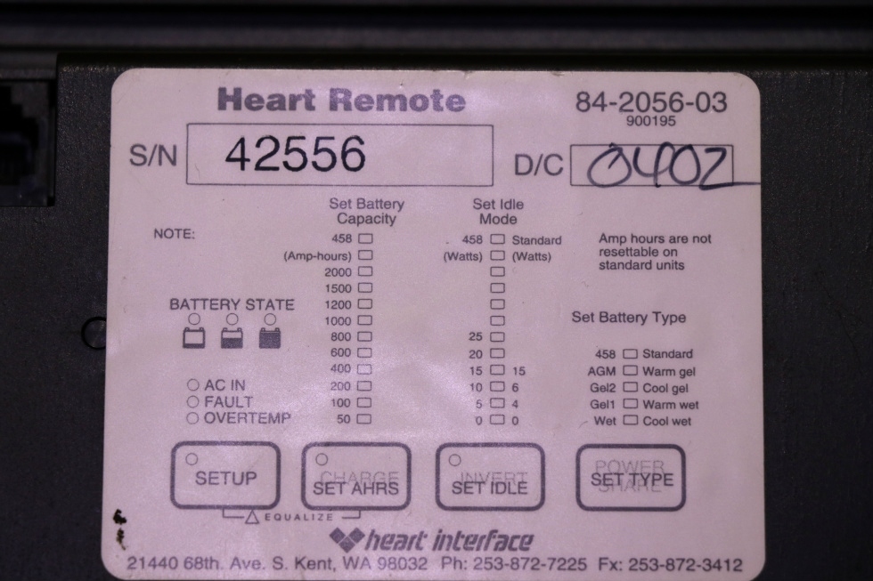 USED 84-2056-03 RV XANTREX / HEART INTERFACE HEART REMOTE MOTORHOME PARTS FOR SALE