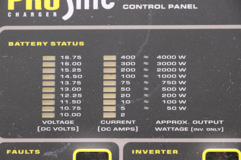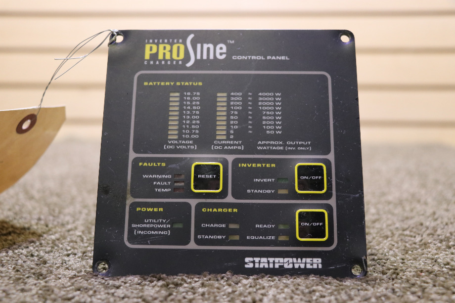 READY TO SHIP. PRICE $200.00 + $14.99 SHIPPING. CONDITION - USED. RV/MOTORHOME USED PROSINE INVERTER CHARGER CONTROL PANELS. CALL VISONE RV (606) 843-9889 TO ORDER OR JUST ADD TO SHOPPING CART FOR EASY CHECKOUT.