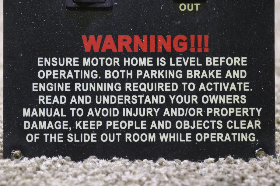 CONDITION - USED. PRICE $50.00 + $10.99 SHIPPING. RV/MOTORHOME USED SLIDE ROOM CONTROL PANELS. READY TO SHIP. CALL VISONE RV (606) 843-9889 TO ORDER OR JUST ADD TO SHOPPING CART FOR EASY CHECKOUT.