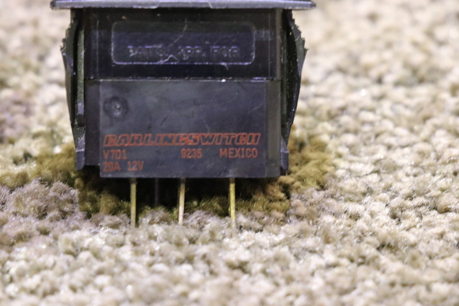 RV/MOTORHOME USED BLACK ROCKER DASH SWITCHES. READY TO SHIP. CONDITION - USED. PRICE $35.00 + $6.99 SHIPPING. CALL VISONE RV (606) 843-9889 TO ORDER OR JUST ADD TO SHOPPING CART FOR EASY CHECKOUT.